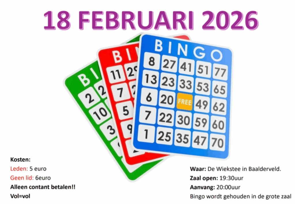 Wij hopen jullie allemaal te zien voor een gezellige bingoavond!